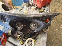 Working on new fairing design, I am going with one of the two headlights with two high beam smaller lamps either side plus a new location for indicators.